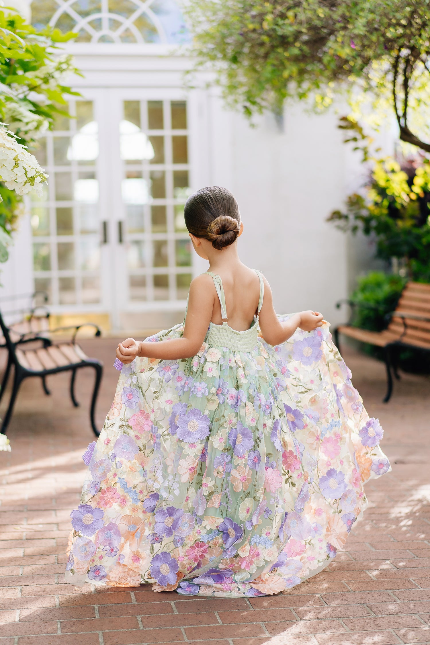 A garden dream in soft mint green and pastel florals — made to twirl, bloom, and shine.